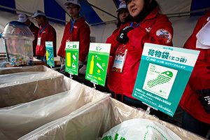 エコ・フレンドシップ活動メンバーが主となって、行った大会会場内資源分別のほか、エコ・フレンドシップ商品メンバーによる運営の乗り物や商品による環境負荷軽減、大会プログラムの印刷電力の一部をグリーン電力で対応するなどの取組みを行っています。