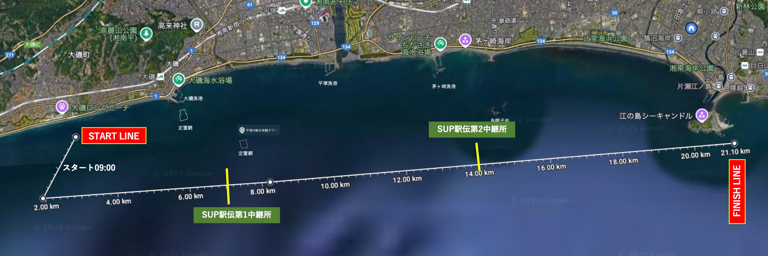 21km:大磯港西側〜烏帽子岩沖〜江ノ島沖フィニッシュ