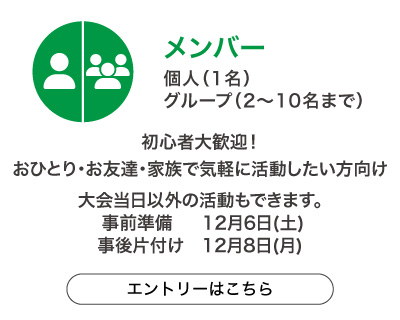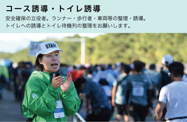 ・大会運営上の安全のため、ボランティア活動中の撮影(動画や写真)はご遠慮ください。また、SNSなどへ大会に関わる文章・写真を投稿したことによるトラブルについて、主催者及び事務局は一切の責任を負いません。