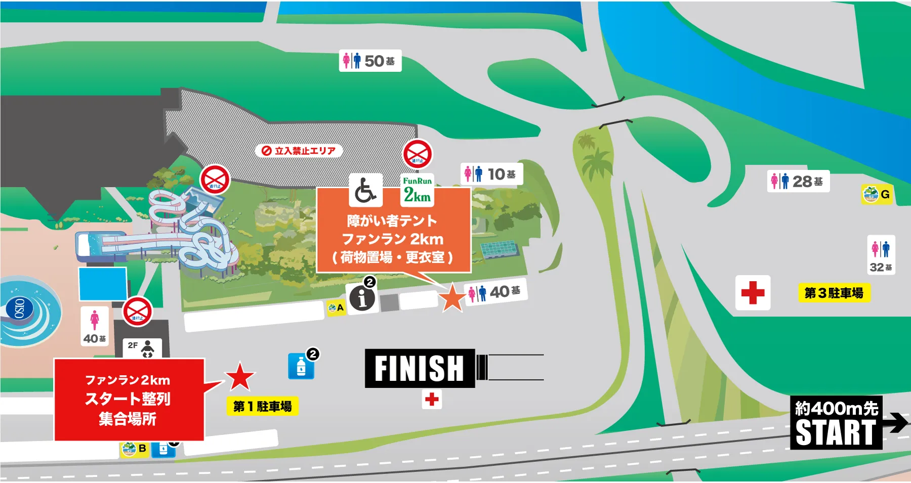・フィニッシュ後、保護者の方はフォトパネル前付近(スタート整列・集合場所)で必ずお子様と合流してください。